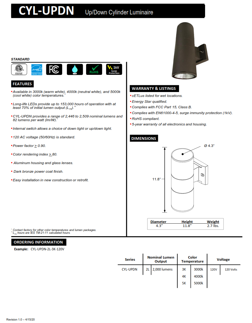 Quick view Details sku: VLMPF VLMPF LED Micro Power Flood The high performance luminaire is designed for applications where long life, low maintenance, and consistent color rendering is required. MSRP: Now: $155.00 Choose Options Quick view Details sku: VCYLUD LEDUp/Down Cylinder Wall Fixture MSRP: Now: $69.95 Add to Cart