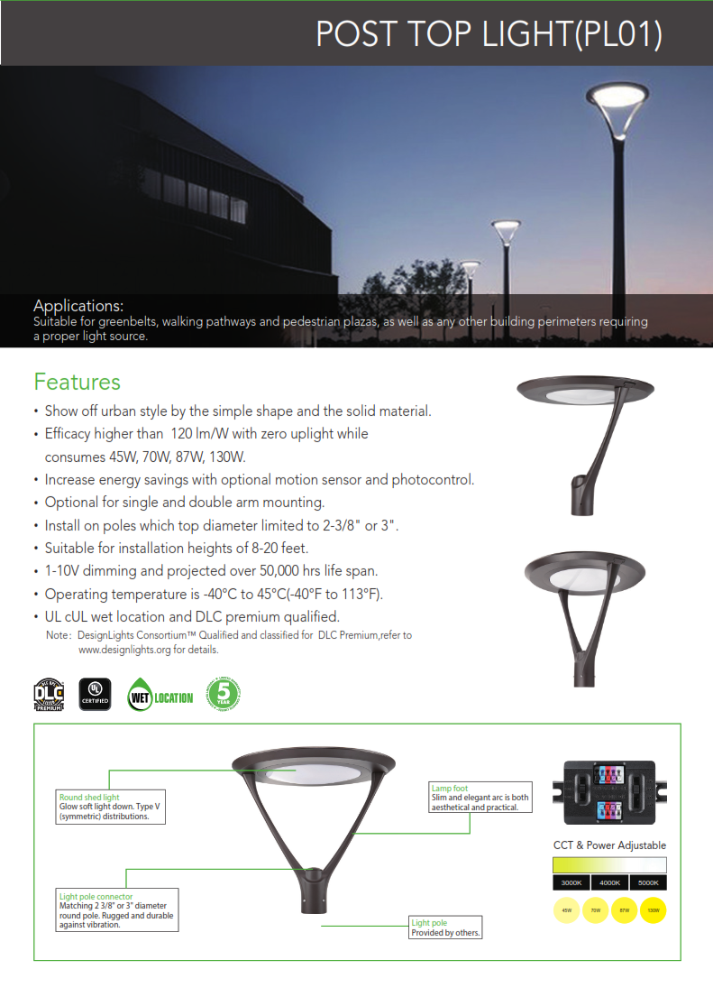 Quick view Details sku: RPT06W2750K Round Post Top LED Light-60 Watt MSRP: Now: $169.95 Choose Options Quick view Details Best Lighting Products | sku: DEMW DEM LED Decorative Emergency Light MSRP: Now: $78.95 Choose Options Quick view Details sku: VE-TP468-80MW-50KMC-LV-D Colonial LED Post Top-Wattage and CCT Adjustable MSRP: Now: $595.00 Add to Cart Quick view Details sku: VS28PLUS LED Dark Skies Corn Lamp for Post Top Retrofit MSRP: Now: $55.00 Choose Options