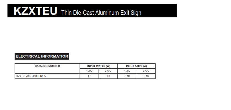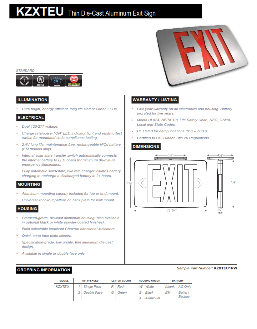 Quick view Details New York City Compliant Die-Cast Aluminum Exit Sign MSRP: Now: $96.00 Choose Options Quick view Details sku: LEDCXTEU2RW LEDCXTEU LED Exit and Emergency Combination Sign MSRP: Now: $55.00 Choose Options Quick view Details sku: CTXTEU Thin All LED Exit and Emergency Thermoplastic Combo MSRP: Now: $51.00 Choose Options