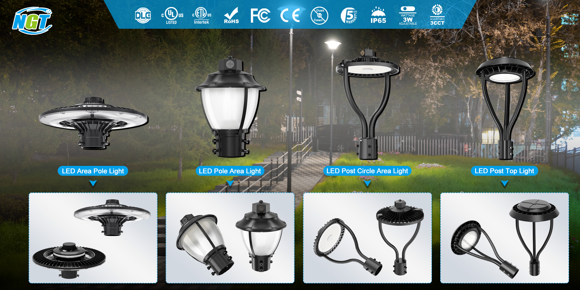 | Item No. | Wattage | Input voltage | Light Source | Luminous Flux | Light Effi. | CCT | LED Driver | Dimension |